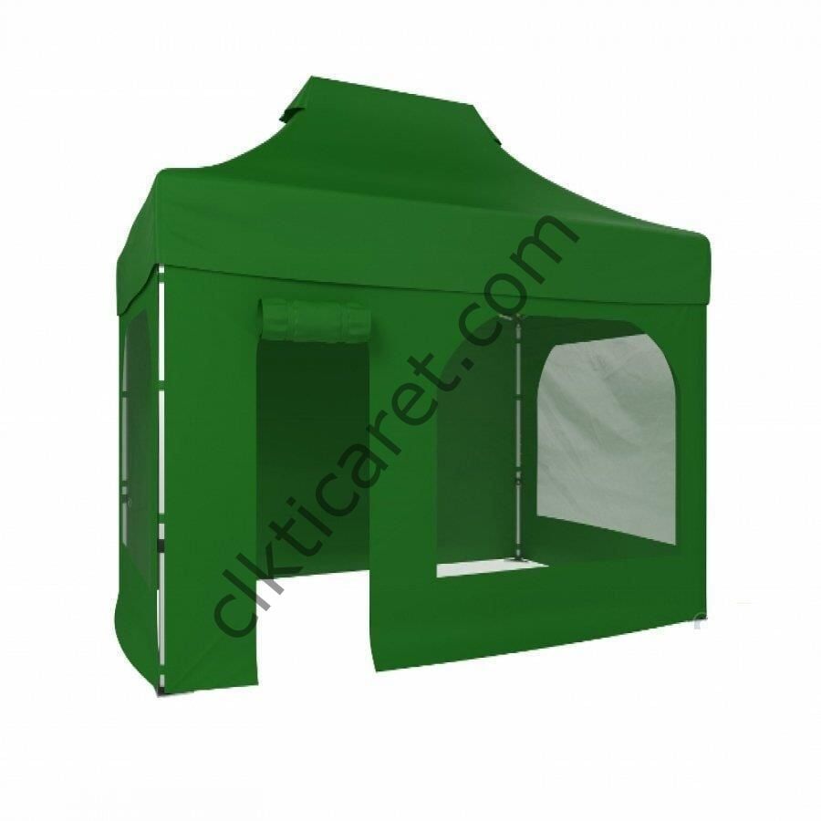 CLK 2x3 Katlanabilir Tente Gazebo Portatif Çadır 2 Yan Pencereli 1 Yan Aksesuarsız 1 Yan Kapı ve Pencereli Benetton Yeşil