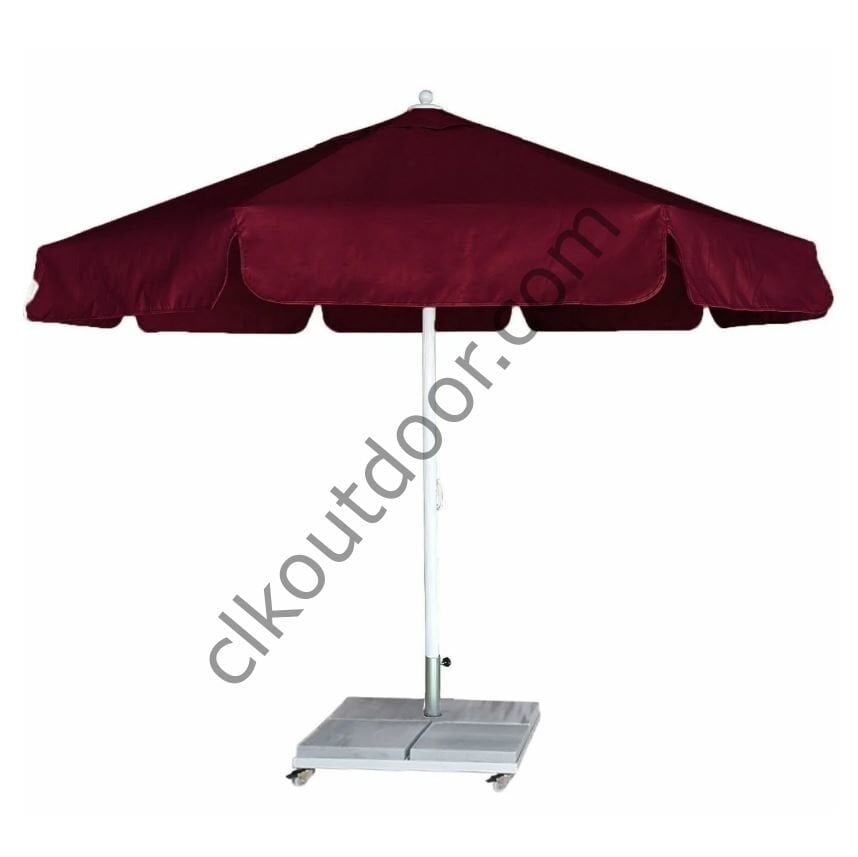 CLK 3,5 Metre Yuvarlak Mega Q60 Şemsiye Bahçe Cafe Havuz Otel Restorant Şemsiyeleri Beyaz - Metal Hareketli Ayak 4 Mermerli (70x70cm 120 kg)
