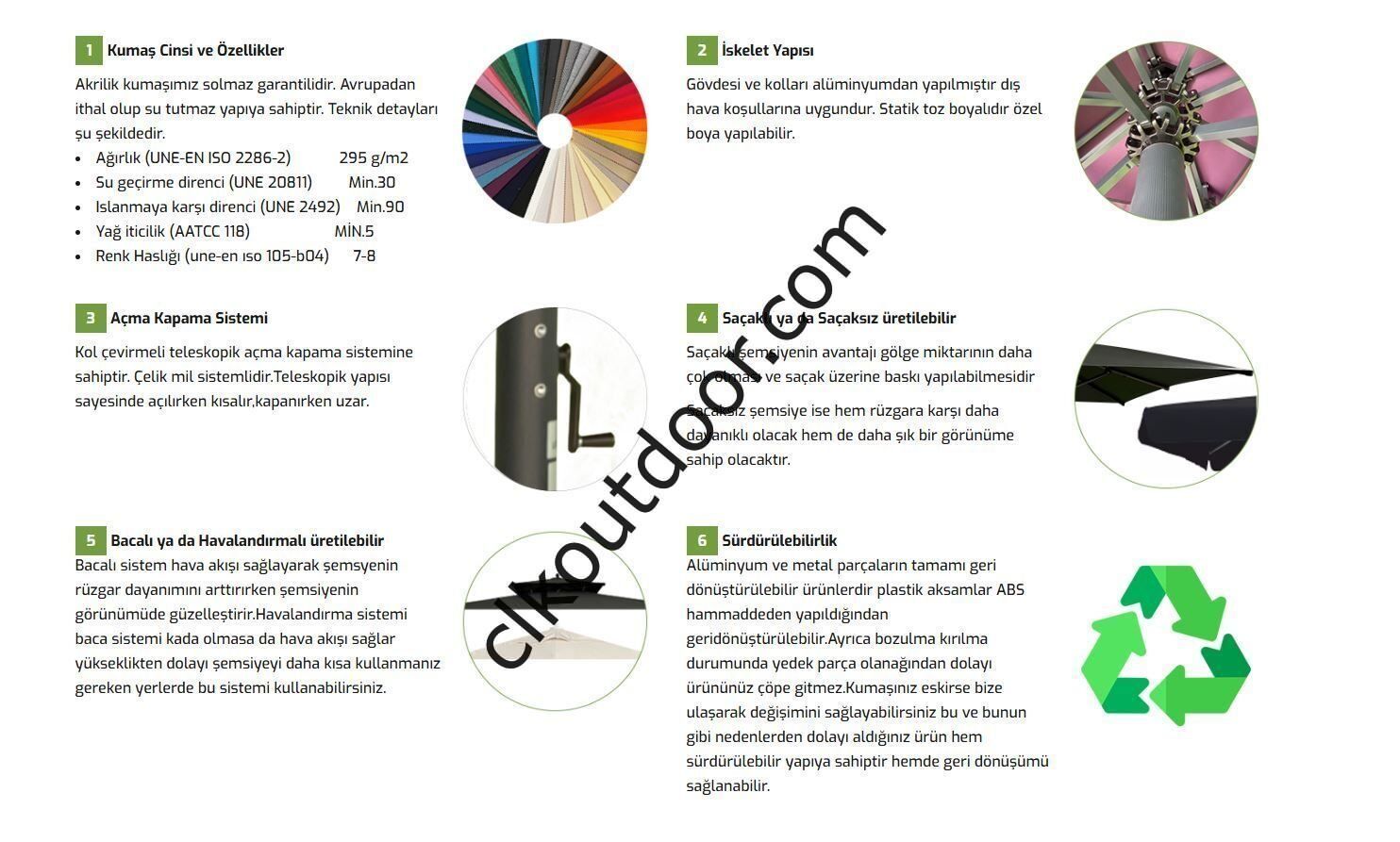 Kumaş: Su İticili UV Koruyuculu Polyester 200 gr