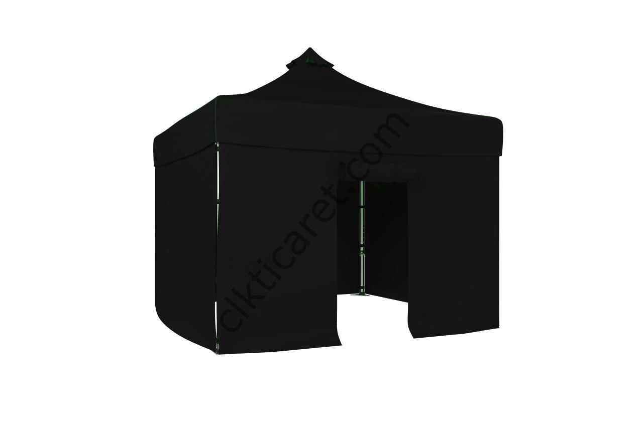 CLK 3x3 52mm Kalın Alüminyum Katlanabilir Tente Gazebo Çadır 4 Yan Kapalı 1 Kapılı Çadır Siyah