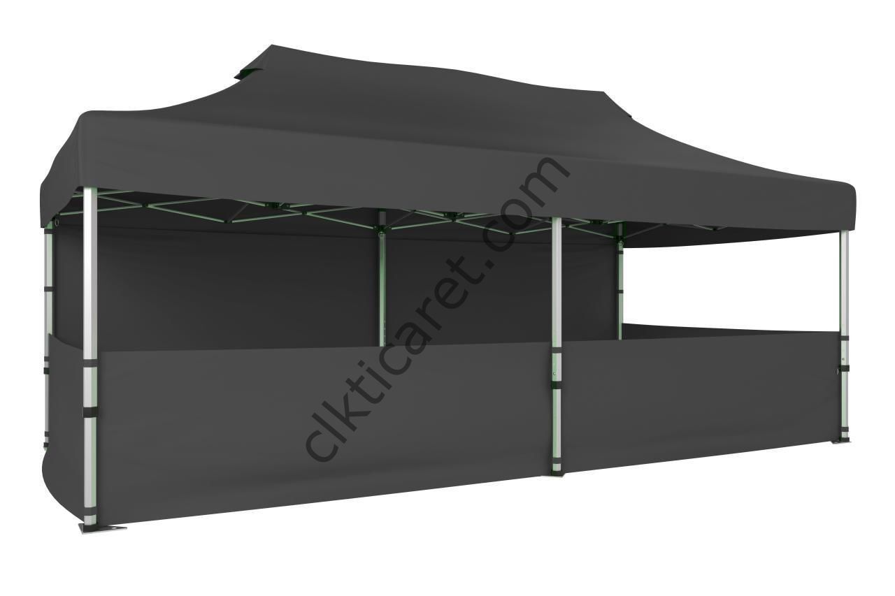 CLK 3x6 Katlanabilir Tente Gazebo Portatif Çadır 30 mm 1 Tam Duvar 3 Yarım Duvar Gri