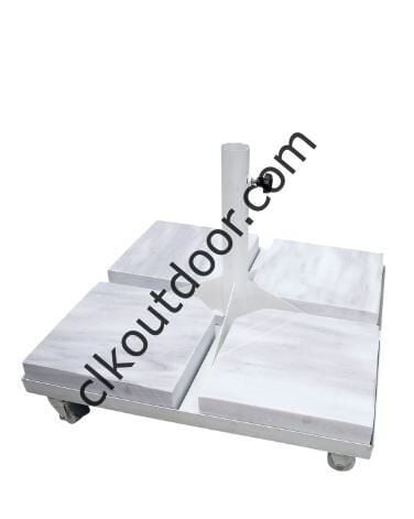 CLK 4 Metre Yuvarlak Mega Q60 Şemsiye Bahçe Cafe Havuz Otel Restorant Şemsiyeleri Açık Mavi (Turkuaz) - Metal Hareketli Ayak 4 Mermerli (70x70cm 120 kg)
