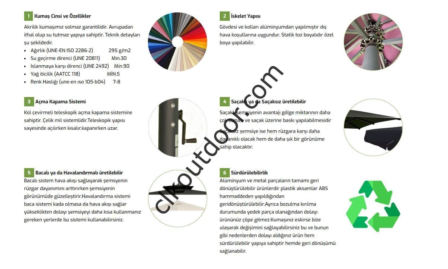 Kumaş: Su İticili UV Koruyuculu Polyester 200 gr