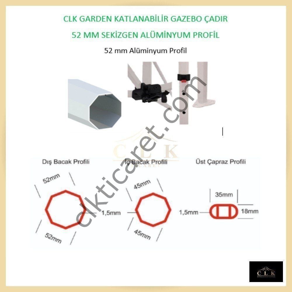 CLK 5x5 mt 52 mm KALIN ALÜMİNYUM PROFİL 1 KENAR KAPALI GAZEBO KATLANIR ÇADIR